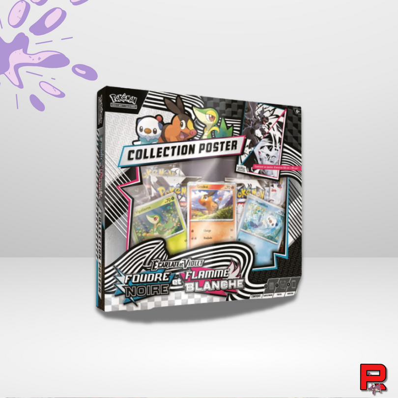 Avec 156 Pokémon différents à découvrir, Unys est une région aux innombrables opportunités pour les Dresseurs et Dresseuses Pokémon. Remplissez votre propre Pokédex régional en commençant par les premiers partenaires Vipélierre, Gruikui et Moustillon en tant que cartes promo brillantes, puis trouvez davantage de Pokémon d’Unys dans les boosters des extensions spéciales Écarlate et Violet – Foudre Noire et Écarlate et Violet – Flamme Blanche. Vous obtiendrez également un poster double face pour célébrer les deux extensions.